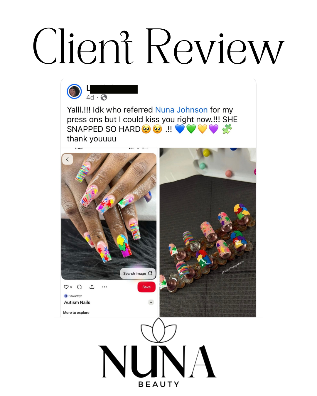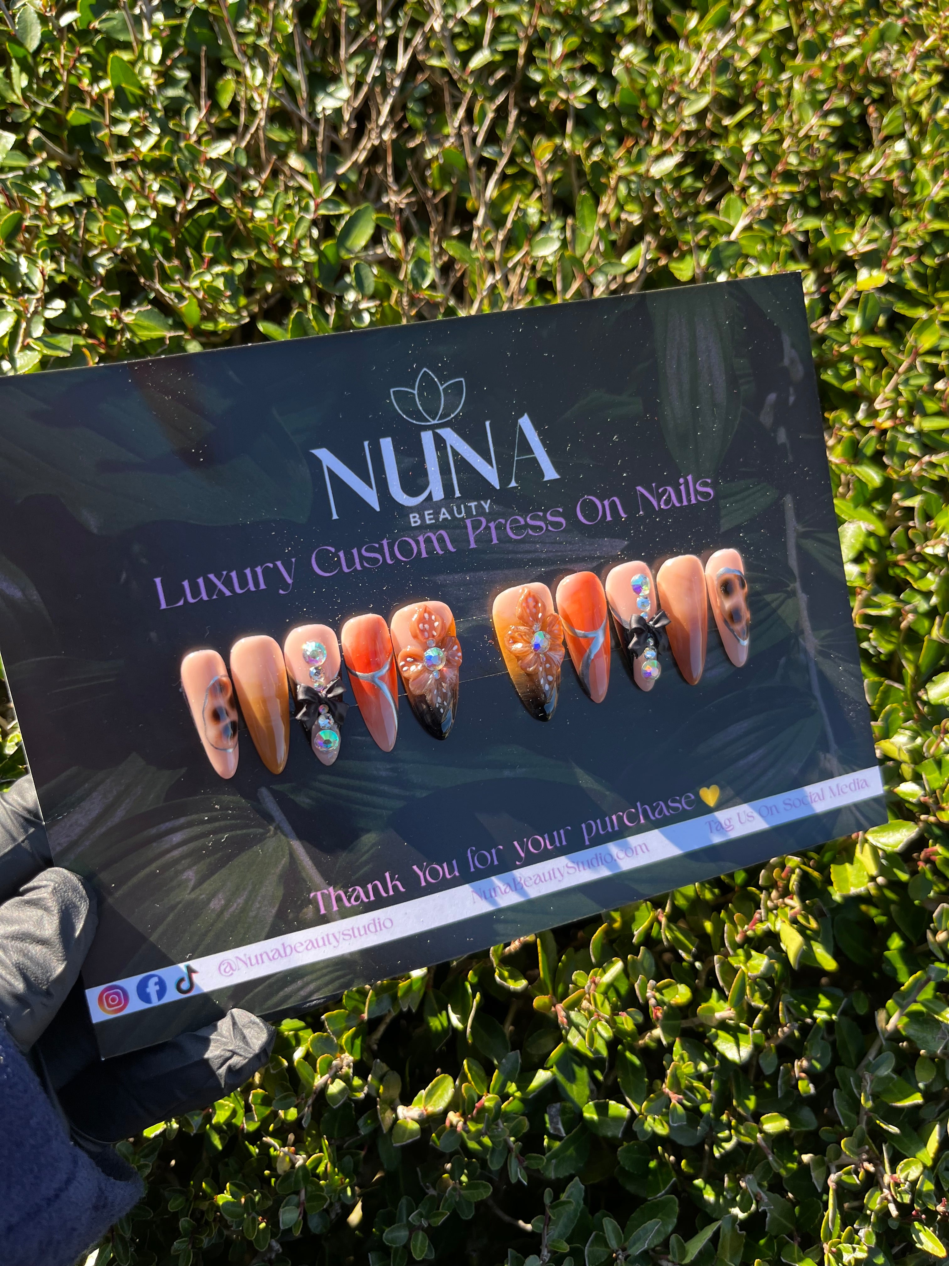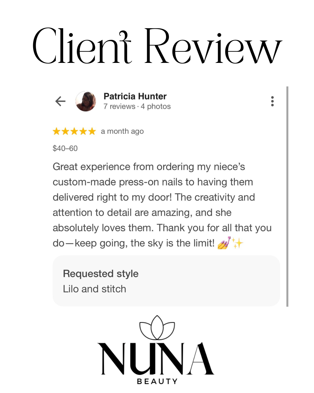 Each set is handcrafted by a nail technician using high-quality products such as acrylic or hard gel for strength, durability, and a salon-quality finish.